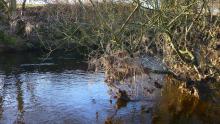 As I reach the red bridge pool, I can see more evidence of the height of the most serious flood : in the form of silt deposited over the ploughed field; and even a substantial old heavy branch left high and dry by the receding waters last week, I have to conclude.